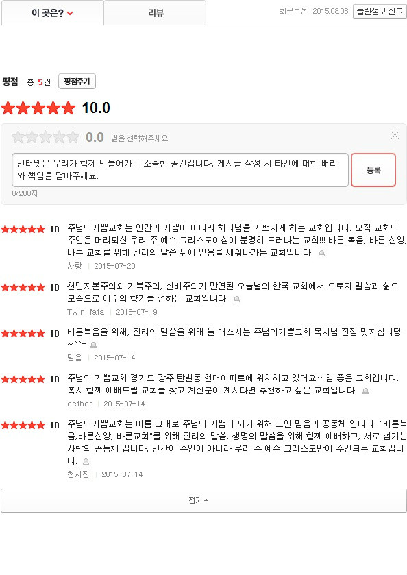 Daum »çÀÌÆ®¿¡ µî·ÏµÈ ¿ì¸® ±³È¸ ÆòÁ¡